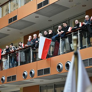 Żadnej znajomej twarzy. Kłamczuszek chyba przwiózł kibiców autokarem z Warszawy.