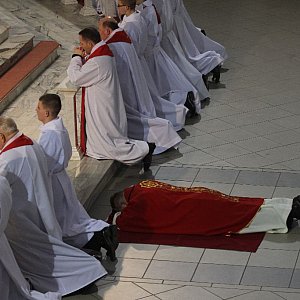 Wielkopiątkowa liturgia jest pamiątką zwycięstwa odniesionego przez umęczonego i ukrzyżowanego Jezusa Chrystusa. W tym dniu używa się czerwonych szat liturgicznych symbolizujących miłość zwyciężającą na krzyżu. W tym dniu nie używa się instrumentów muzycznych, ani dzwonków. Nie ma także pieśni na wejście. Na początku celebrans przez chwilę leży krzyżem przed ołtarzem. W tym czasie wierni klęczą.[FOTORELACJA]4527[/FOTORELACJA]