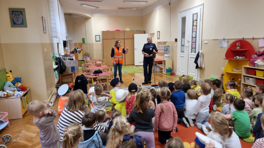 Podczas spotkania poruszone zostały także inne ważne tematy związane z bezpieczeństwem. Dzieci dowiedziały się, jak prawidłowo przechodzić przez jezdnię, jak należy zachowywać się w samochodzie i dlaczego praca drogowców ma tak duże znaczenie dla wszystkich uczestników ruchu. Takie zasady przydadzą im się każdego dnia, kiedy idą do szkoły, wybierają się na spacer albo wsiadają na rower.