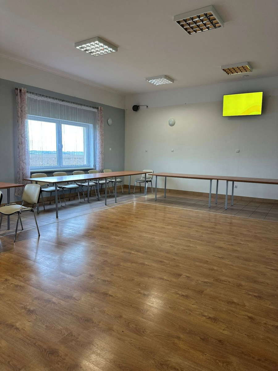 W ramach prac odświeżono wnętrze budynku, zamontowano nowe oświetlenie z czujnikami ruchu oraz wymieniono instalację elektryczną, co poprawiło bezpieczeństwo i pozwoli na wygodne korzystanie z oświetlenia dyskotekowego. W sali pojawiły się nowe głośniki i linki pod sufitem do zawieszania dekoracji, a na zewnątrz zamontowano gniazdka elektryczne, które ułatwią przygotowanie imprez plenerowych.