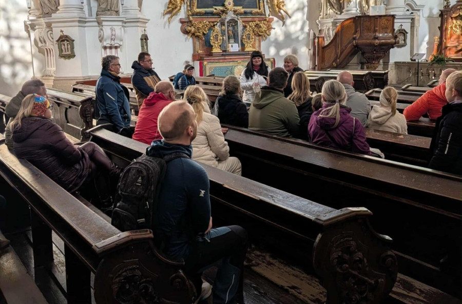 Nie zabrakło też chwili zachwytu nad jednym z najcenniejszych zabytków regionu – Bazyliką Mniejszą pw. św. Jadwigi Śląskiej. W cieniu jej barokowych wież można było na chwilę zwolnić, posłuchać opowieści o historii Legnickiego Pola i spojrzeć na to miejsce z zupełnie innej perspektywy.