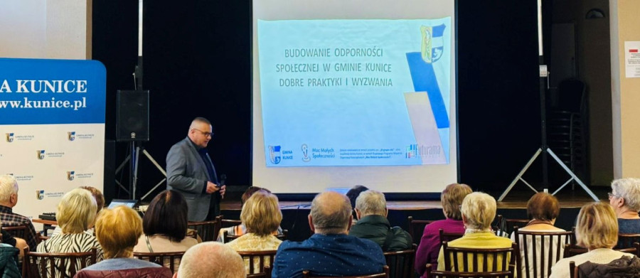 W Gminnym Ośrodku Kultury i Sportu w Kunicach odbyła się debata publiczna pod hasłem „Kunice – silna, zintegrowana i bezpieczna wspólnota”, zorganizowana przez Fundację Futurama. Spotkanie poświęcono budowaniu odporności społecznej mieszkańców, wzmacnianiu lokalnych więzi oraz wspólnemu działaniu na rzecz bezpieczeństwa w gminie.