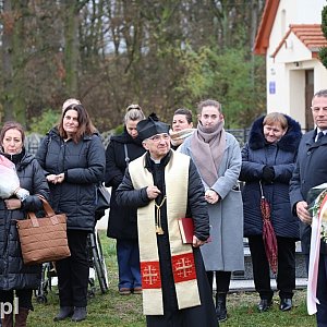 Na cmentarzu gości powitał Wójt Gminy Kunice Krzysztof Błądziński, który odwołał się do pierwszych lat po wojnie, kiedy rodziny przyjeżdżające na te tereny odbudowywały domy i organizowały życie codzienne w nowych warunkach. W jego wypowiedzi pojawiły się wspomnienia o trudnych początkach miejscowości, o pracy wykonywanej przy porządkowaniu zniszczonych gospodarstw i o tworzeniu podstaw edukacji, kultury oraz lokalnych więzi sąsiedzkich. Wśród słów kierowanych przez przedstawicieli samorządu Powiatu Legnickiego znalazły się odniesienia do działań pionierów, którzy nadawali kierunek rozwojowi okolicy. To oni tworzyli instytucje, dbali o organizację życia społecznego i wprowadzali stabilność, która umożliwiła późniejszy rozwój miejscowości. Rola pierwszych rodzin została przedstawiona jako fundament, na którym do dzisiaj opiera się charakter lokalnej społeczności.