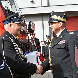 Nowy wóz został przekazany druhom z Rzeszotar podczas uroczystości, w której udział wzięli między innymi minister Krzysztof Kubów, nadbrygadier Adam Konieczny, komendant wojewódzki Państwowej Straży Pożarnej, Adam Babuśka, starosta legnicki, Dawid Stachura, wójt gminy Miłkowice, sołtysi wsi z gminy Miłkowice i sponsorzy.
