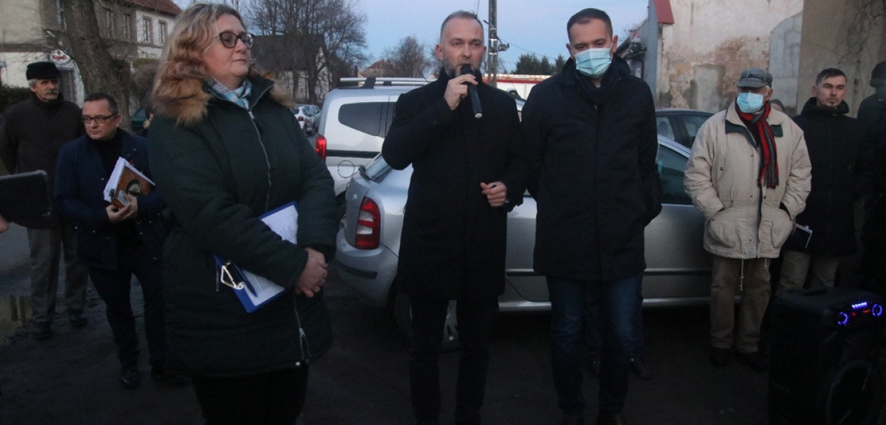 Na spotkaniu z mieszkańcami pojawił się obok Dawida Stachury zastępca prezydenta Krzysztof Duszkiewicz z miejskimi urzędnikami. Nie pojawił się inwestor. Poinformował wójta Stachurę drogą mailową, że nie może uczestniczyć w nim ze względów epidemicznych. Dawid Stachura złożył mieszkańcom życzenia świąteczne i przekazał dobrą wiadomość.