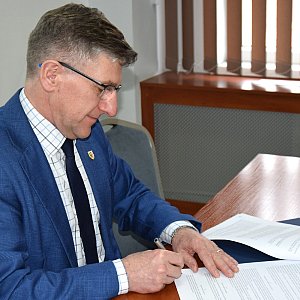 W poniedziałek Starosta Legnicki Adam Babuśka, Wicestarosta Legnicki Janina Mazur oraz Skarbnik Powiatu Marta Płosińska–Soboń podpisali umowę z firmą BUDRIM z Kunic na realizację zadania „Przebudowa dróg powiatowych nr 2222D i 2223D w miejscowości Prochowice w zakresie budowy przejścia dla pieszych w ramach zadania „Poprawa bezpieczeństwa ruchu drogowego w obrębie skrzyżowania dróg powiatowych nr 2222D i 2223D w miejscowości Prochowice”.