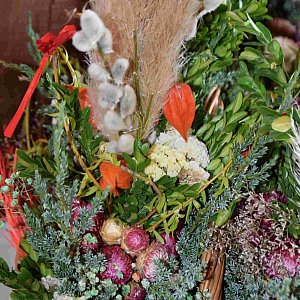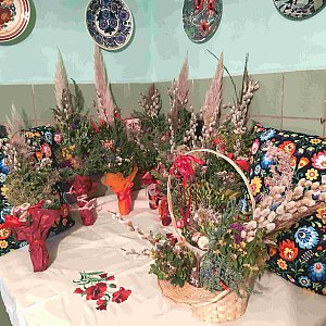 Warsztaty prowadziła utalentowana artystycznie pracownica Szkoły Podstawowej im. Ireny Kosmowskiej w Bieniowicach Emilia Komaniecka. Z suszonych kwiatów, bazi, traw, witek wierzbowych, oraz bukszpanu powstały palmy, które przyozdobione kolorowymi wstążkami i krepiną wręczone zostały między innymi przewodniczącemu rady powiatu oraz Zarządowi Powiatu Legnickiego.