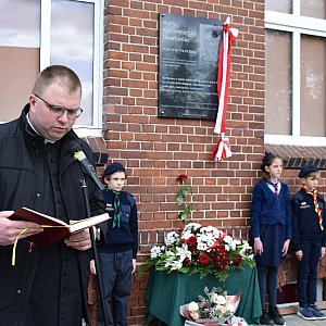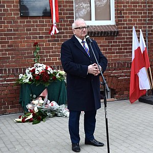 Odsłonięcia tablicy dokonali starosta Adam Babuśka, wójt Rafał Plezia oraz Stanisław Obertaniec.