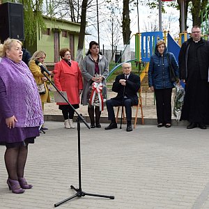 Historię powstania polskiej Szkoły Podstawowej w Mikołajowicach przedstawiła zebranym wicestarosta Janina Mazur. Jej otwarcie odbyło się w grudniu 1945 roku, a poświęcenie 13 stycznia 1946 r. Z zapisków pierwszej kroniki szkolnej wynika, że po 700 latach na budynku szkoły zawisło Godło Rzeczypospolitej Polskiej i biało-czerwona Flaga Polski oraz rozbrzmiał „Mazurek Dąbrowskiego”. Przybliżając sylwetkę Marii Krzyworączki Obertaniec, która przybyła na Ziemie Odzyskane z kresowego województwa tarnopolskiego, zaznaczyła, że nauczycielka poświęciła całe swoje życie posłudze dzieciom, kształtowaniu ich charakterów i postaw patriotycznych oraz przywiązania i wiary w polskość.