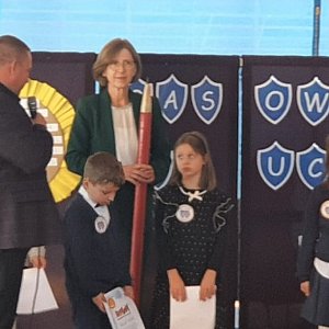 Uroczystość rozpoczął Samorząd Uczniowski, który serdecznie powitał wszystkich zgromadzonych. W wydarzeniu uczestniczył również Wójt Gminy Kunice, który obdarował najmłodszych słodkimi upominkami na dobry początek ich edukacyjnej przygody.