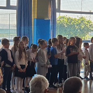Uroczystość zakończył występ uczniów klasy 3, którzy zaśpiewali piosenkę dla pierwszaków oraz wręczyli im własnoręcznie wykonane zakładki do książek. Na zakończenie wszyscy zostali zaproszeni na poczęstunek przygotowany przez rodziców.