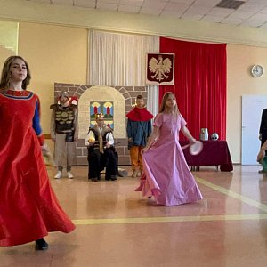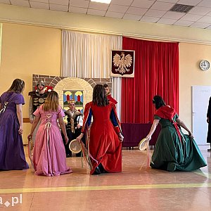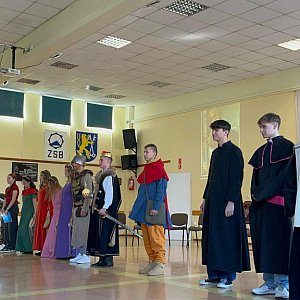 W miniony czwartek uczniowie ZSB zaprezentowali widowisko oparte na historycznych przekazach. Oprócz „aktorów” wcielających się w rolę Chrobrego, uczestniczących w koronacji duchownych i rycerzy widzowie zobaczyli tancerki ze Szkolnego Zespołu Ludowego, które tym razem przygotowały średniowieczny taniec.
