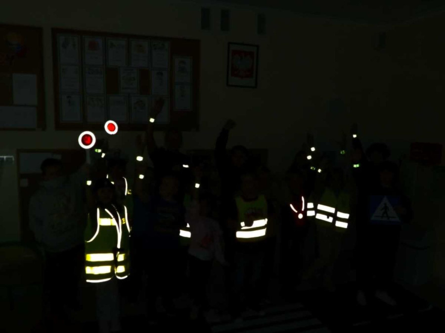 szkoła odblaskowa i ciemność w terenie. Dzieci nie zakładają potem tych odblasków.