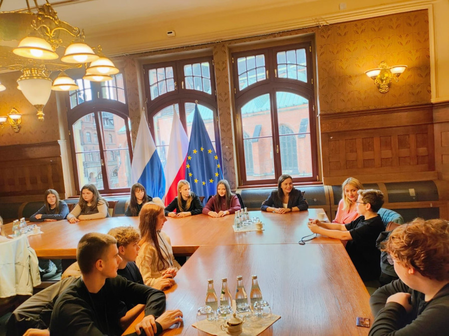 Kolejnym punktem programu była wizyta w Centrum Witelona, gdzie odbył się pokaz dronów. Później uczniowie z Miśni i Legnicy udali się na spotkanie z prezydent Aleksandrą Krzeszewską. Młodzież mogła porozmawiać z władzami miasta o edukacji, projektach młodzieżowych i różnicach między szkołami w Polsce a w Niemczech.