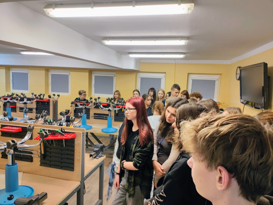 Wizyta rozpoczęła się od wspólnego śniadania, które uczniowie klasy ósmej przygotowali w nowoczesnej pracowni kuchennej. Na stołach pojawiły się tradycyjne polskie przysmaki, a atmosfera była ciepła i pełna rozmów o szkole i codziennym życiu uczniów po obu stronach granicy. Po części artystycznej goście wzięli udział w spacerze po szkole, podczas którego zobaczyli m.in. sale dydaktyczne, bibliotekę i miejsce spotkań uczniów.
