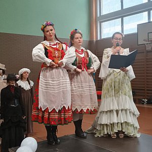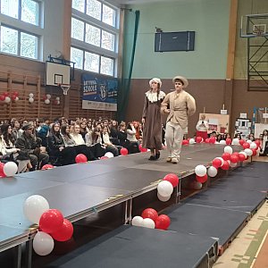 Jak się okazało temat chwycił i młodzież zaangażowała się w organizację uroczystości opracowując stroje oraz sposób ich prezentacji na wybiegu – jak na prawdziwym pokazie mody. (Warto dodać, ze szkoła posiada własne podesty sceniczne, dzięki czemu typu uroczystości nie przedstawiają problemu.).