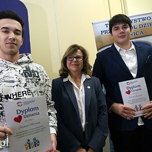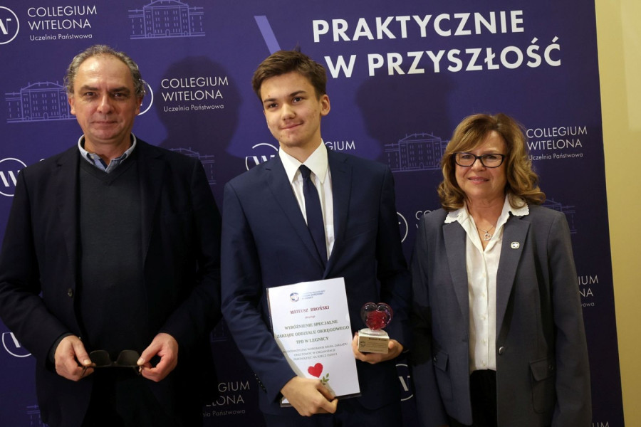 Mateusz jest uczniem 3 klasy technikum elektrycznego i od 3 lat w zespole szkolnym z powodzeniem realizuje powierzoną Mu funkcję: Przewodniczącego / Starosty klasy. W przestrzeni szkolnej funkcjonuje na wybitnie wysokim poziomie. Jest osobą powszechnie lubianą i szanowaną przez kolegów oraz nauczycieli. Znacznie poprawił wyniki edukacyjne, oraz cyklicznie uzyskuje ocenę wzorową z zachowania. Jest to uczeń niezwykle odpowiedzialny, ambitny i pracowity. Mateusz bardzo często udziela się charytatywnie na rzecz swojej szkoły oraz poza placówką oświatową w myśl fundamentalnych zasad Pro publico bono i Non profit. Reprezentuje szlachetne wartości osobowe będące odzwierciedleniem Jego wzorowego poziomu wychowania. Cechuje Go duża empatia rówieśnicza, wysoki poziom kultury osobistej oraz wrażliwości społecznej na potrzeby innych oraz otoczenia. Mateusz ambitnie i z wielką pasją angażuje się w organizację oraz udział we wszystkich wydarzeniach szkolnych oraz wybranych inicjatywach lokalnych, w tym działalności w ramach takich organizacji jak Towarzystwo Przyjaciół Dzieci, legnickie Towarzystwo Strzelec, pomaga w legnickim Schronisku dla zwierząt. Mateusz posiada dużą świadomość historyczną i patriotyczną którą z dumą reprezentuje przy okazji oficjalnych wydarzeń szkolnych i pozaszkolnych. Mateusz jest też tegorocznym laureatem Ogólnopolskiego konkursu Ośmiu wspaniałych. Jako opiekun Szkolnego Koła TPD jestem pod ogromnym wrażeniem zaangażowania Mateusza we wszystkie działania organizowane przez TPD. Wiele czasu spędza w biurze oddziału pomagając w swoim wolnym czasie wakacje i ferie. Bardzo chętnie włącza się we wszystkie akcje i zbiórki żywności, pomaga w nagłych i pilnych sytuacjach, kiedy jest o to proszony. Zawsze można na Niego liczyć i nigdy nie odmawia pomocy. Przyjęta przez Niego postawa życiowa zasługuje na powszechne uznanie – powiedział Paweł Zadrożny.