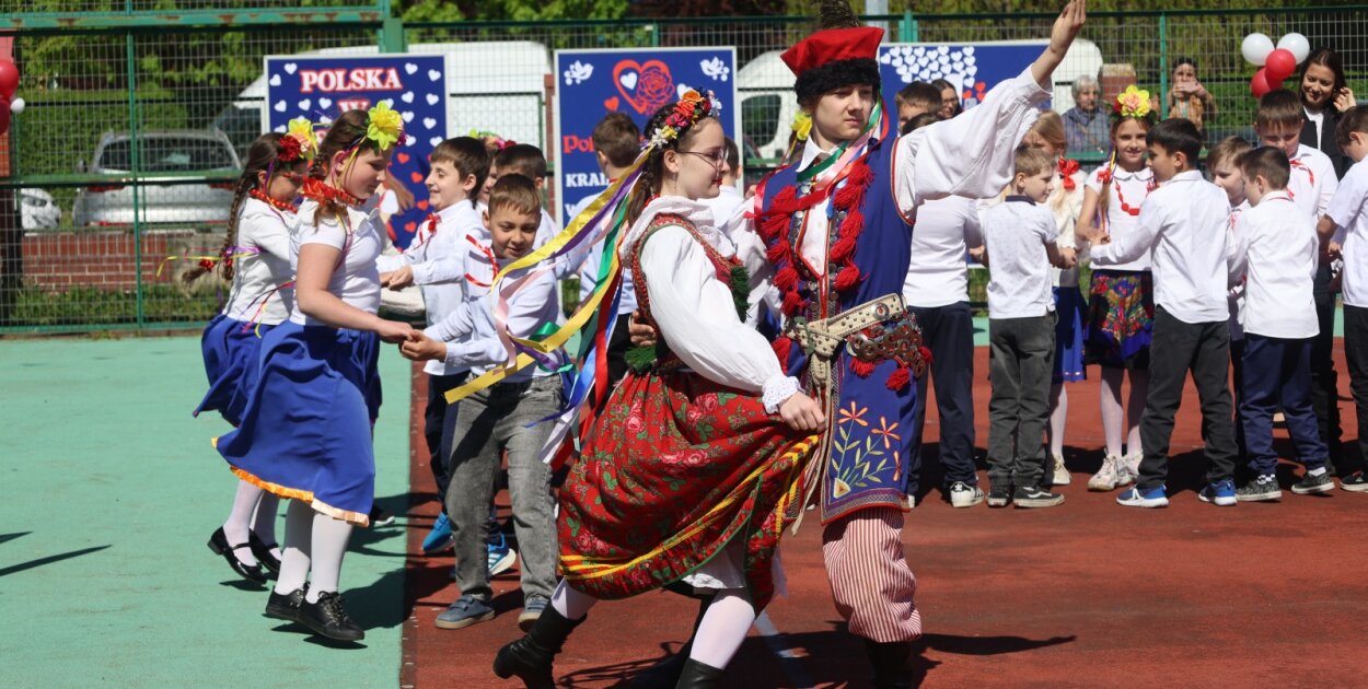 Uczniowie klas młodszych Zespołu Szkół Integracyjnych w Legnicy w wyjątkowy sposób uczcili nadchodzące święta majowe. Happening patriotyczny połączony z nauką narodowego tańca stał się zwieńczeniem całorocznej pracy nad budowaniem tożsamości narodowej wśród najmłodszych.