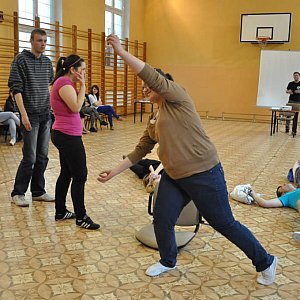 Jakub B. Bączek i Paweł Cieślak z firmy Stageman Polska szkolili uczniów Technikum Hotelarskiego w tzw. animacji czasu wolnego. Młodzież liznęła trochę wiedzy teoretycznej, a później rozpoczęły się tańce.