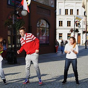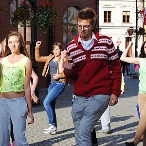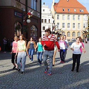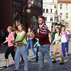 „Błyskawiczny tłum” tańczących uczniów z legnickiego Zespołu Szkół Ogólnokształcących nr 2 oglądaliśmy w piątkowe popołudnie przed Galerią Piastów.