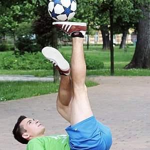 Zespołowe bieganie za piłką na boisku zamienił na Freestyle Football. Michał "Brzezik" Brzezicki, uczeń V LO i jeden z najmłodszych freestylowców w Polsce nie wyobraża sobie dnia bez intensywnego treningu.