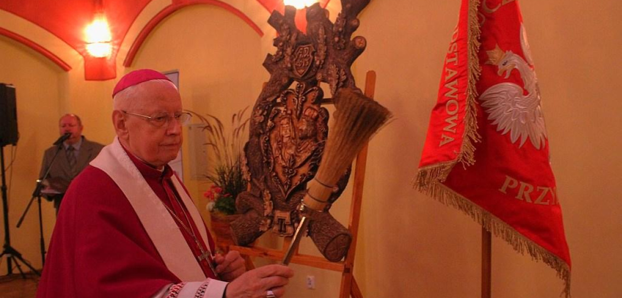 [FOTORELACJA]6931[/FOTORELACJA]Kolejna część uroczystości odbyła się w Sali GOKiS, gdzie biskupi dokonali poświęcenia sztandaru, który wójt Aleksander Kostuń przekazał szkole. Wójt jest także fundatorem tablicy pamiątkowej, która została w poniedziałek odsłonięta w głównym holu szkoły.