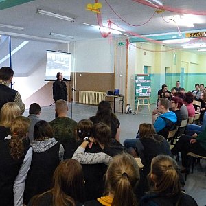 Uczniowie zaśpiewali po rosyjsku ,,Katiuszę”, ,,Biełyje rozy” czy ,,Błękitną chusteczkę”. Nie zabrakło pięknej i nastrojowej poezji rosyjskiej recytowanej przez nauczycielkę języka polskiego Beatę Siek i ucznia klasy wojskowej – Patryka Borkowskiego. Dopełnieniem klimatu rosyjskiego były rosyjskie romanse wykonane z towarzyszeniem gitary przez nauczyciela wychowania fizycznego Bogusława Dolatę.