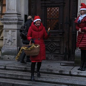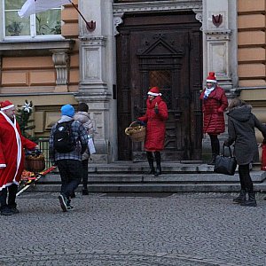 Przed budynkiem I Liceum Ogólnokształcącego, Mikołaje z koszami cukierków pojawiły się już wczesnym rankiem. W ich role wcielili się dyrektorka Halina Tamioła, jej zastępca Agnieszka Nowak, dyrektor Gimnazjum Społecznego TWP Sławomir Suchanowski a także biolog Robert Wójcicki.