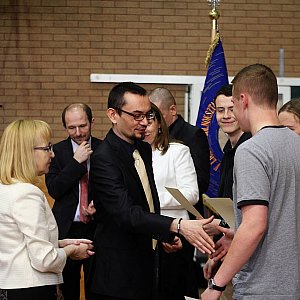 Po uroczystym wniesieniu sztandaru szkolnego absolwenci przekazali go uczniom klas pierwszych. Dyrekcja liceum i wychowawcy dziękowali trzecioklasistom za wspólnie spędzony czas, gratulowali wyników w nauce i życzyli powodzenia na egzaminach maturalnych i dalszej, dorosłej drodze życia. Uroczyste wręczenie świadectw zakończyło część oficjalną.