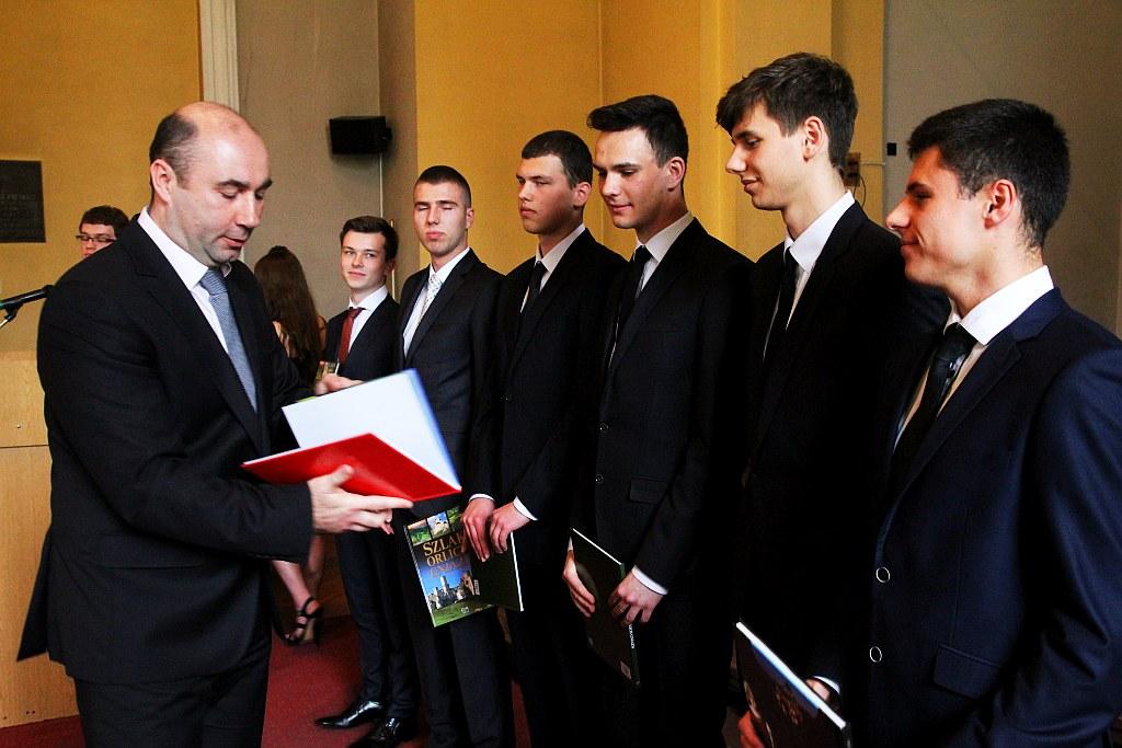 Szczególnie wzruszającym momentem było odznaczenie najlepszych absolwentów odlanym z brązu medalem „Cum laude”, ufundowanym przez rodziców. Przyznawany on jest, wraz z tytułem honorowego absolwenta, od 1996 r. Otrzymujący go uczniowie są laureatami lub finalistami olimpiady przedmiotowej, mają średnią ocen przynajmniej 4,0 i bardzo dobre zachowanie. W tym roku odznaczony medalem został Błażej Gadek, Bartłomiej Najdecki i Michał Smoliński. Dyrekcja szkoły wręczyła również dyplomy uznania rodzicom, którzy stworzyli odpowiednie warunki i atmosferę umożliwiającą uczniom osiągnięcie sukcesów.