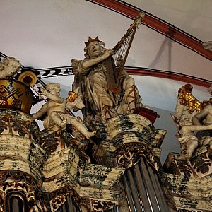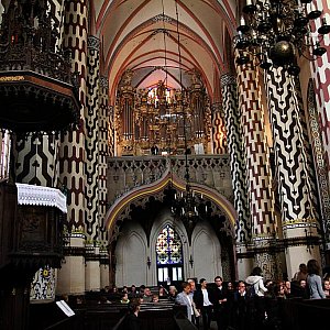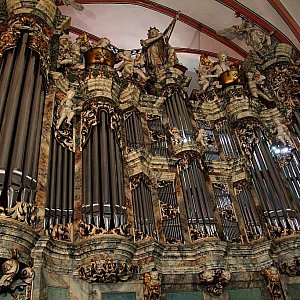 Uczniowie mogli dowiedzieć się także, że w Kościele Mariackim znajdują się tak naprawdę dwa organy. Pierwsze to te używane dzisiaj, które znalazły się w nim w 1914 roku, a drugie to fragmenty poprzedniego instrumentu z XVIII wieku, czyli prospektu organowego. Młodzież usłyszała, jakie dźwięki można było wydobyć z piszczałek, wchodzących w skład prospektu. Dziś pełni on przede wszystkim rolę wizualną.