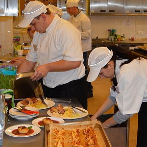 W tym samym dniu o miano najlepszych w regionalnym etapie konkursu na najlepszego ucznia w zawodzie technik żywienia i usług gastronomicznych walczyły trzyosobowe drużyny z Zespołu Szkół Ekonomicznych w Głogowie, Powiatowego Zespołu Szkół w Chojnowie, Zespołu Szkół nr 2 w Lubinie oraz CKZiU w Legnicy. Zadaniem uczestników było przygotowanie potraw z wykorzystaniem polędwicy oraz karpia. W tej rywalizacji CKZiU reprezentowali uczniowie klasy 2K: Martyna Goman, Mateusz Goman i Mirosław Głaz. Pracami komisji oceniającej to współzawodnictwo kierowała Janina Klecha – Urban.