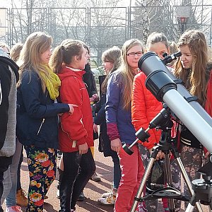 -Jesteśmy liceum im. Jana Heweliusza, a nazwa zobowiązuje - śmieje się Edward Dobosz, dyrektor szkoły. - Mamy dziś u siebie wielu gości, przyszły wycieczki z innych liceów, z gimnazjów, nawet nasi okoliczni sąsiedzi postanowili skorzystać z okazji i zobaczyć zaćmienie.