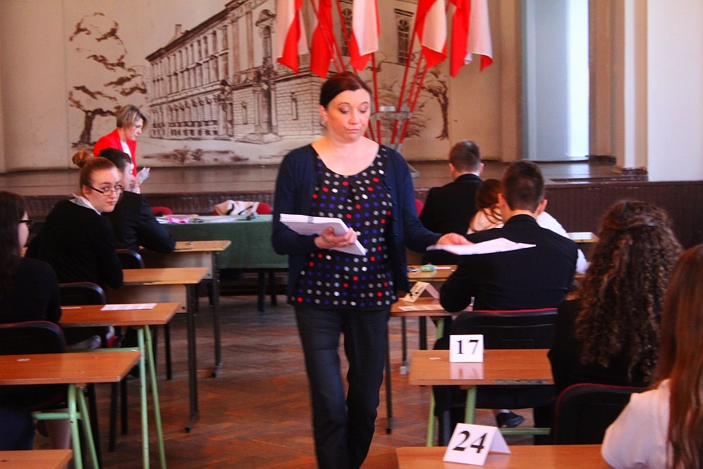 Po przerwie przystąpili do egzaminu z języka polskiego. Ten rozpoczął się o godzinie 11:00. Na drugą część uczniowie mieli 90 minut. Tu uczniowie musieli odpowiedzieć na pytania dotyczące II części „Dziadów” Adama Mickiewicza. Opisać celebrytę, który nie jest sławny, opisać podróż w czasie której poznali sławnego człowieka. Nie zabrakło też zadania dotyczącego czytania ze zrozumieniem. Dyslektycy dostali na rozwiązanie zadań dodatkowe 20 minut do każdego czasu przeznaczonego na uporanie się z testem.