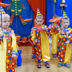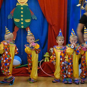 Aby uczestniczyć w pasowaniu na przedszkolaka rodzice maluszków przenieśli się do się „Krainy Pajacyków”.