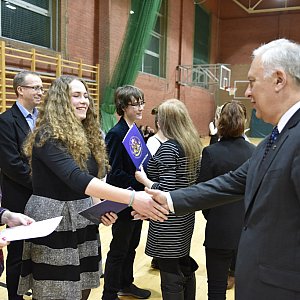 Uroczystość uświetnił swoją obecnością prezydent Tadeusz Krzakowski, pierwszy dyrektor placówki. Dołączył się do gratulacji i uścisnął dłonie najlepszym uczniom szkoły.