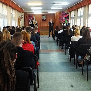 Uhonorowano jednak nie tylko społeczników. Filip Grzybowski i Paweł Klimczak ukończyli liceum ze średnią powyżej 5 i otrzymali świadectwa z wyróżnieniem. Teraz przed wszystkimi uczniami egzaminy maturalne, do których przez trzy lata się przygotowywali. Dyrektor Zychowicz jest dobrej myśli.