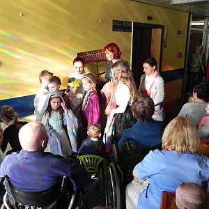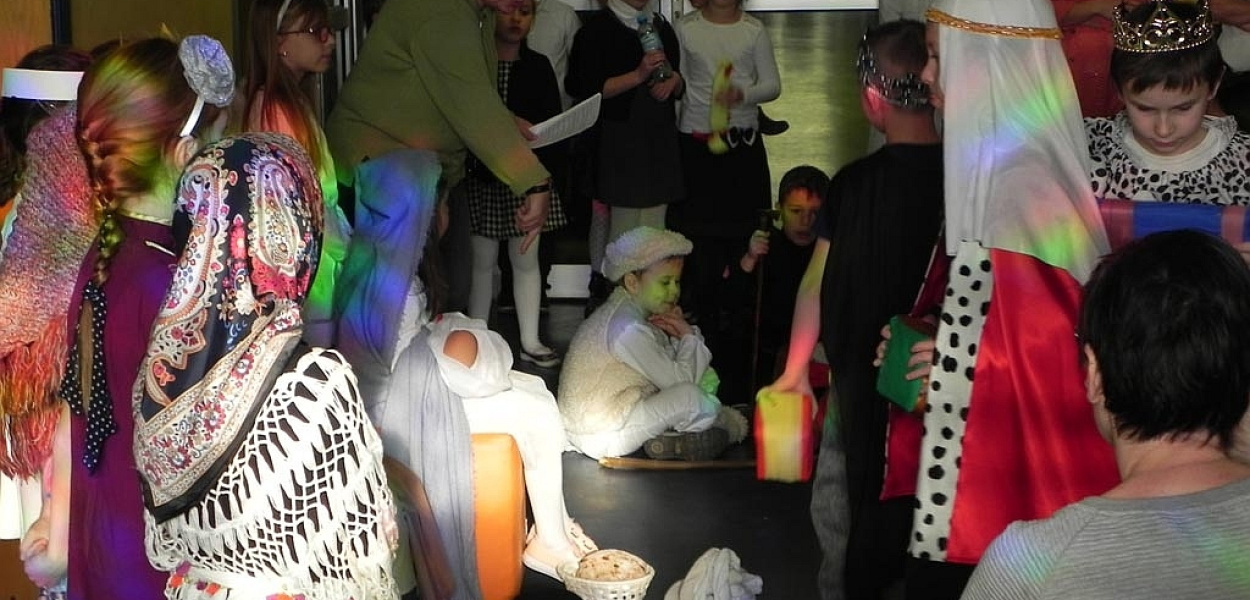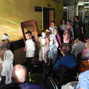Kilkudziesięciu małych pacjentów legnickiego szpitala obejrzało jasełka w wykonaniu uczniów ze Szkoły Podstawowej nr 19.