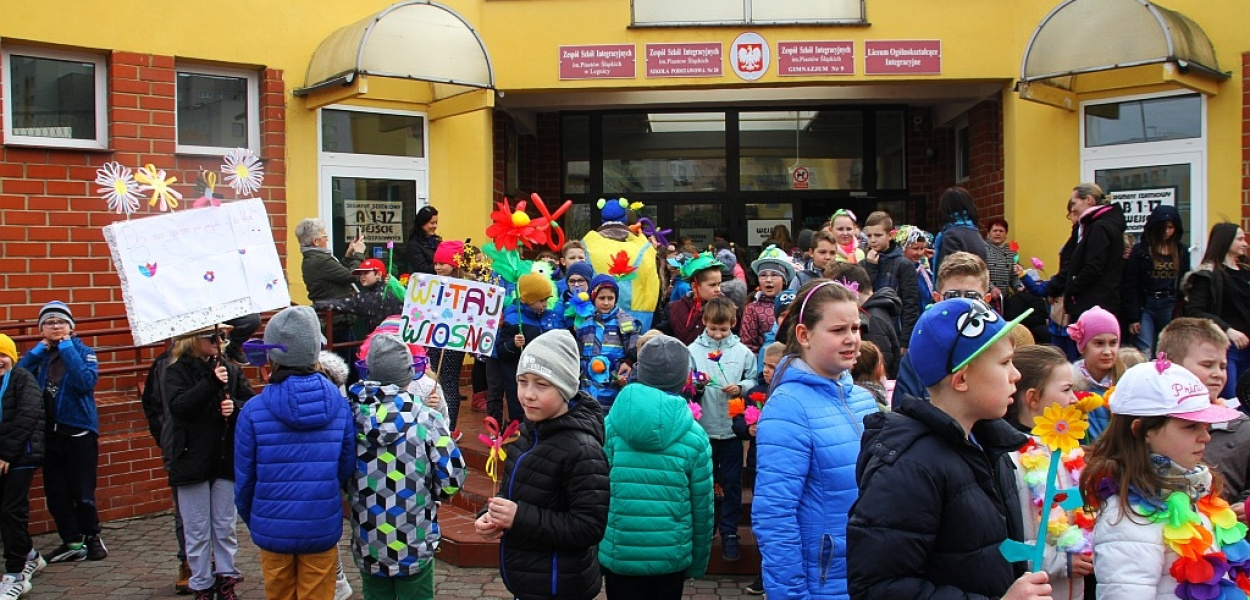 Barwnym i głośnym korowodem powitali uczniowie najmłodszych klas Zespołu Szkół Integracyjnych wiosnę. Nie zabrakło kwiatów z bibuły, kolorowych strojów. Korowód przeszedł ulicami Piekar.