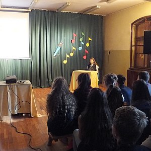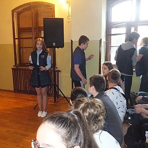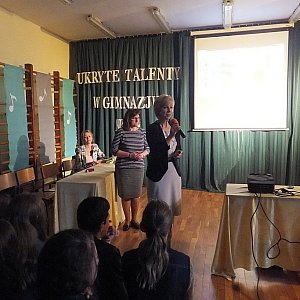 Anastazja Mykitiuk opowiedziała o sobie koleżankom i kolegom. Spotkanie odbył się w cyklu „Ukryte talenty Gimnazjum nr 5”, z inicjatywy Rady Rodziców.