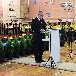 Oficjalna cześć uroczystości odbyła się w sali gimnastycznej. Opowieść o historii szkoły snuł jej wieloletni dyrektor Stanisław Bednarek. Uczniowie zaprezentowali program artystyczny zatytułowany „Było, jest i będzie”. Miłym i wzruszającym akcentem była dekoracja sztandaru szkoły i orderem Towarzystwa Przyjaciół Dzieci. Uhonorowane zostały także działaczki na rzecz dzieci.