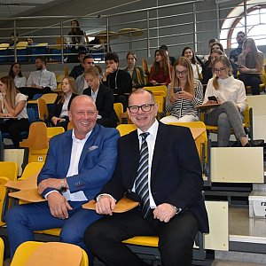 Na zdjęciu z Panią prorektor to wszyscy dzienni studenci? Imponująca ilość. Na trybunach też cienko wielu pracowników tej szkoły widzę.