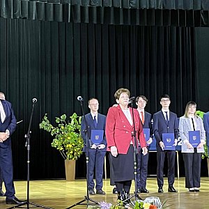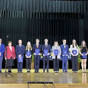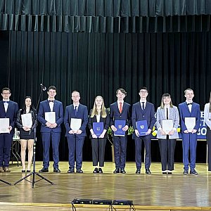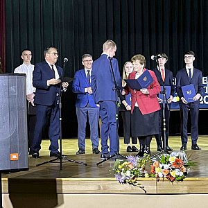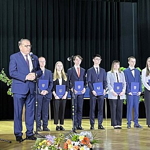 Zakończenie roku szklonego było doskonałą okazją do podsumowań oraz gratulacji dla tych uczniów, którzy osiągnęli najwyższe wyniki w nauce. Podczas uroczystej akademii zorganizowanej i przygotowanej przez uczniów klas pierwszych Starosta Legnicki Adam Babuśka, Wicestarosta Legnicki Janina Mazur i Etatowy Członek Zarządu Powiatu Krzysztof Sowiński wręczyli dziesięciu wyróżnionym maturzystom Stypendium Starosty Legnickiego przyznawane za wybitne wyniki oraz szczególne osiągnięcia. Nie zabrakło również życzeń skierowanych do tegorocznych maturzystów, a także podziękowań dla dyrekcji, nauczycieli, a także rodziców. Podczas uroczystości Nagrodzonym Uczniom towarzyszył dyrektor Mariusz Kowalczyk. W uroczystości udział wzięli burmistrz miasta Chojnów Jan Serkies, kierownik referatu Promocji i Kultury w gminie Chojnów Anna Banaszek, Dowódca Jednostki Ratowniczo-Gaśniczej Ryszard Kawka oraz wzruszeni rodzice tegorocznych maturzystów.
