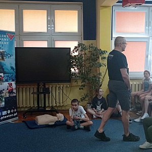 Młodzi ludzie słuchają i uczą się na specjalnych fantomach jak pomóc osobie potrzebującej w razie potrzeby. Nie mniejszym zainteresowaniem cieszą się opowieści o nurkowaniu.