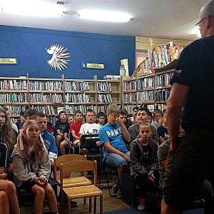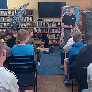 W filii dziecięco – młodzieżowej Legnickiej Biblioteki Publicznej ratownicy OSP – ORW „Pinoter” spotkali się z dziećmi i młodzieżą ze szkoły Podstawowej nr 16 i mówili o bezpieczeństwie nad wodą oraz pierwszej pomocy przedmedycznej.