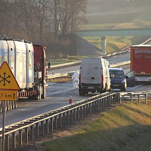 Samochód ciężarowy najechał na tył drugiego samochodu ciężarowego. Kierowcy wyszli z samochodów. Kierowca jednego z nich z niewyjaśnionych przyczyn przeszedł na drugą stronę autorstrady i tam został potrącony przez samochód, a następnie przejechany przez kilka kolejnych samochodów. Zginął na miejscu. Policja prowadzi dochodzenie.[FOTORELACJA]4111[/FOTORELACJA]