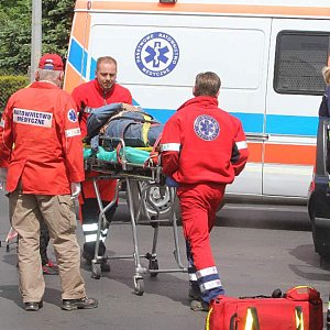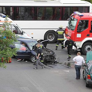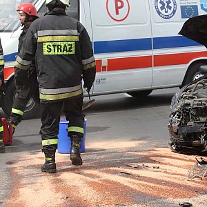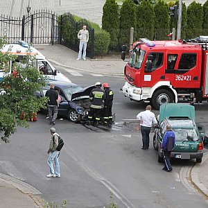 Kierowca samochodu osobowego marki Rover został odwieziony do szpitala. Policja ustala przyczyny wypadku. Wprowadzony jest objazd ulicą Wielkiej Niedźwiedzicy.