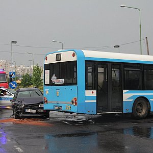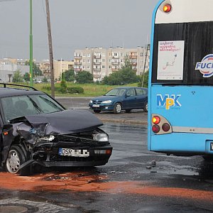 Na ulicy Sikorskiego na wysokości kościoła NSPJ doszło do zderzenia samochodu osobowego i autobusu MPK. Dwie osoby zostały ranne.