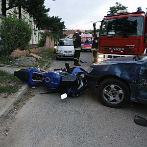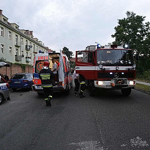 Ranny motocyklista trafił do szpitala w wyniku urazów, jakich doznał podczas zderzenia z samochodem osobowym.