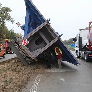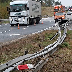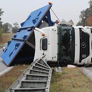 TIR wiózł do Niemiec wywrotnicę kolejową ważącą ponad 30 ton. Kierowca tłumaczył się, że na jezdnię wyskoczyło mu zwierzę, nagle zahamował, wpadł w poślizg i przewrócił się na bok. Samochód leży na jezdni blokując ruch. Na razie odbywa się on tylko jednym pasem w obie strony A4. Ale tylko do czasu. Gdy TIR będzie stawiany na koła za pomocą dźwigu, zamknięty zostanie cały kawałek autostrady.